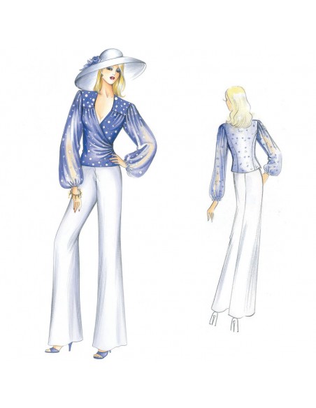 Diese drapierte Tunika hat einen doppelten Crossover, einen herzförmigen Ausschnitt und Ärmel, die an den Schultern gerafft sind.