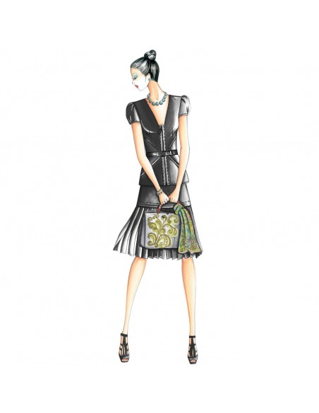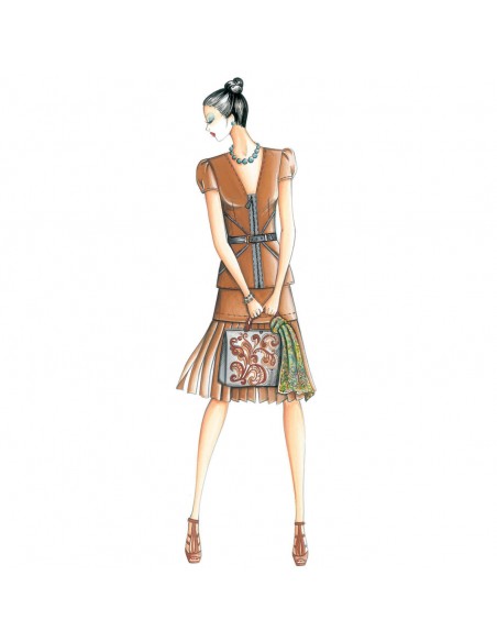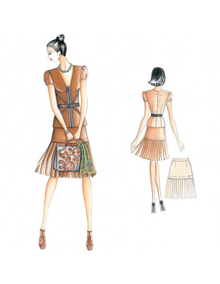 Schlank machende Tunika, mit Reißverschluss und kurzen Ärmeln mit Schulterbiesen. Rock n. 3100.