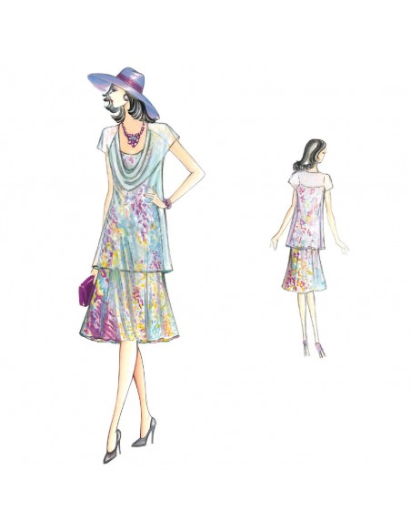 Trapezbluse mit Flügelärmeln und V-Ausschnitt mit Kuhkragen. Zu fertigen aus Tüll, Organdy, Musselin oder Crêpe-Satin. Kleid n. 5373.