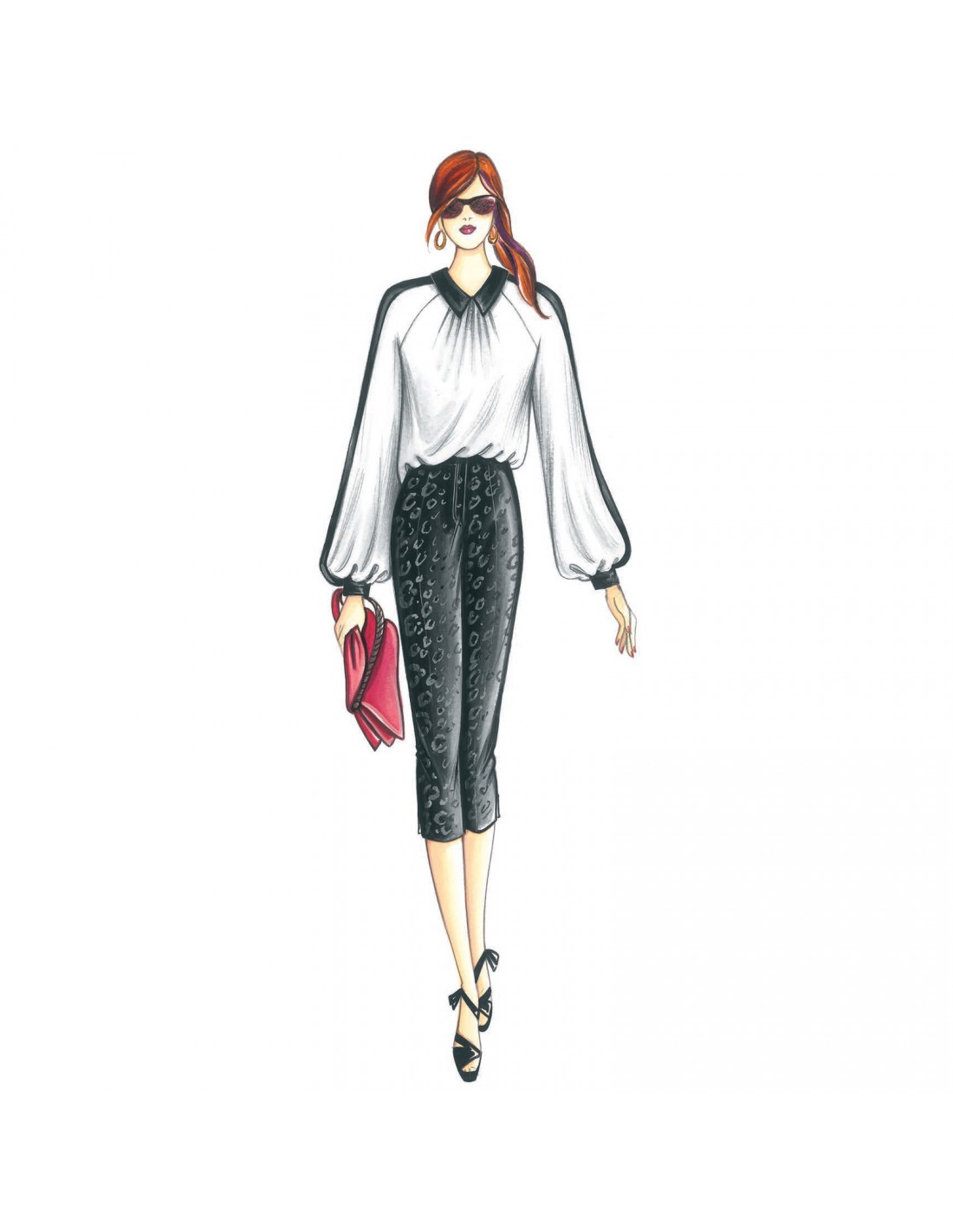 Blouse with raglan sleeves, to be made with or without a collar. Suggested fabric: crêpe and chiffon.