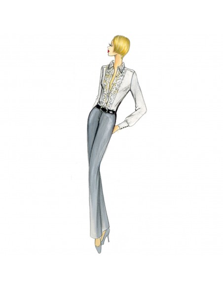 Hemd aus Chiffon mit Taschen, Satinkragen und Manschetten oder aus Viskose mit Spitzeneinsatz. Rock n. 9271.