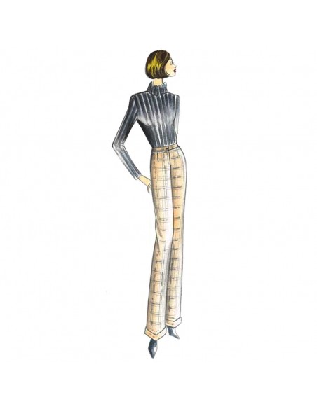 Diese gerade Hose im Herrenstil hat unten umgeschlagene Manschetten. Trench n. 1037.