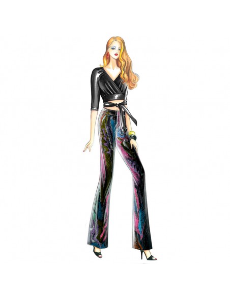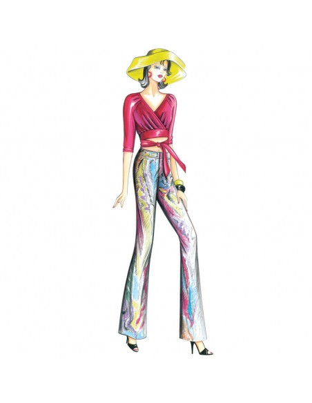 Diese Hose ist unten ausgestellt und hat eine leicht überschnittene Taille. Top n. 2783.