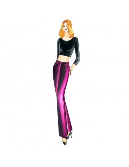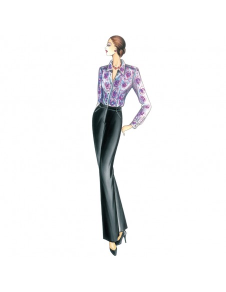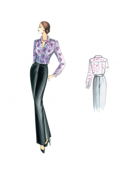 Gerade, lockere Hose mit teilweisem Gummizug in der Taille und schrägen Taschen. Bluse n. 5172.