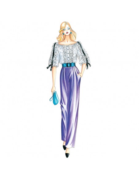 Diese Hose hat weiche Falten und einen Reißverschluss an der Hüfte. Bluse n. 2791.