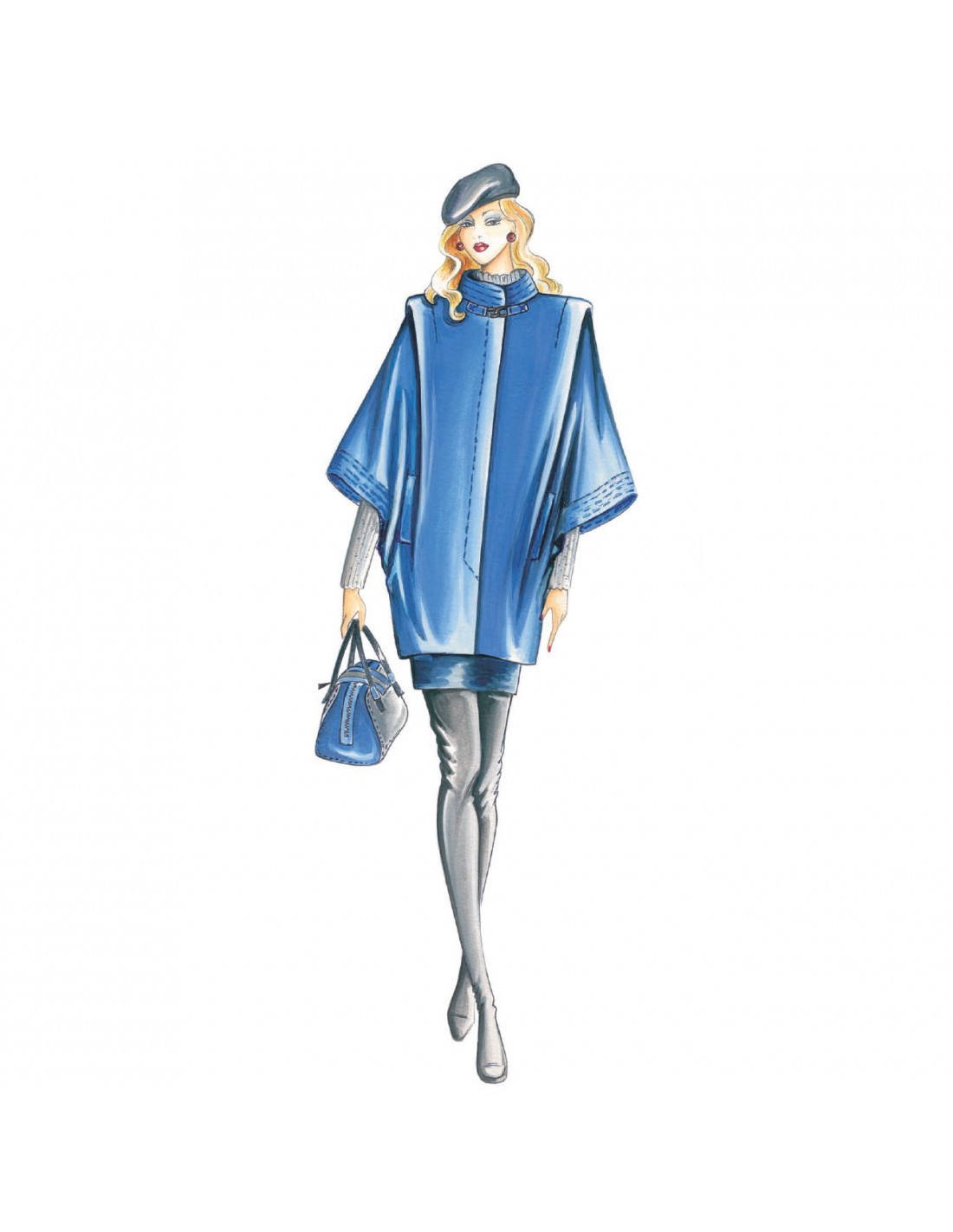 This caftan-like poncho narrows at the bottom. It has a ring collar, hidden zipper closure and impressive shoulders with pleating and internal padding.