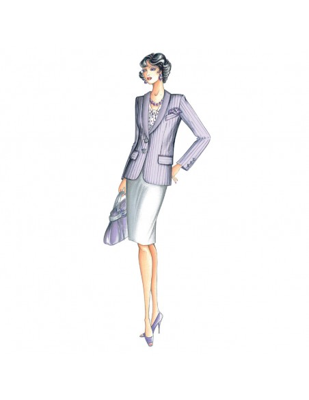 Diese relativ gerade, einreihige Jacke hat einen Schalkragen und wird mit zwei Knöpfen geschlossen. Vest n. 2102.