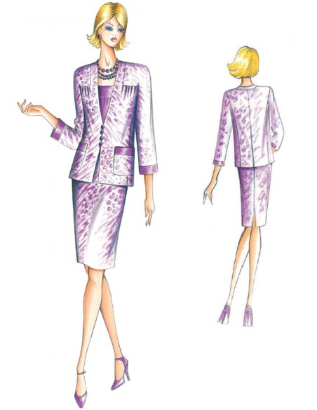 This somewhat form-fitting jacket has sleeves which are set in at back and are one with the yoke in the front with gathers. Suggested fabric: crêpesatin or jersey.