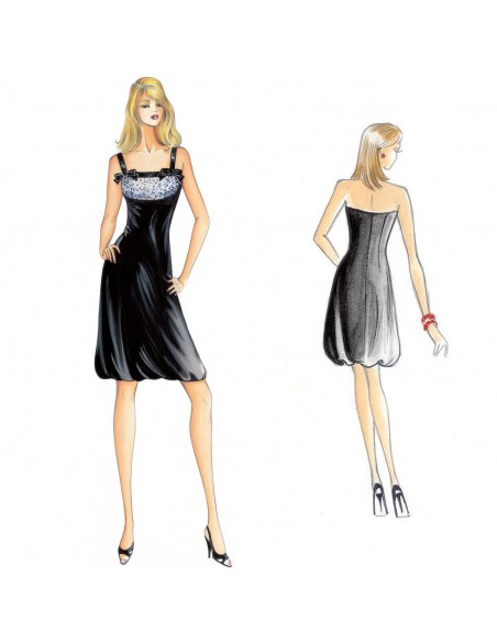 Dieses figurbetonte Kleid hat einen tiefen Ausschnitt, ist mit Pailletten bestickt und hat einen hochgeschlagenen Saum. Empfohlener Stoff: Ottoman.