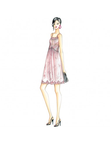 Dieses Kleid ist in Bahnen unterteilt. Empfohlener Stoff: Musselin oder Satin-Jersey.