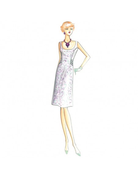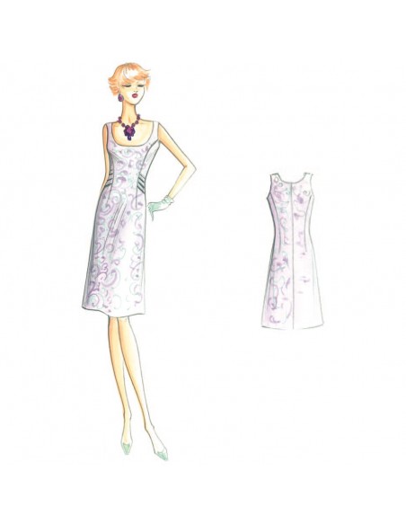 Dieses leicht ausgestellte Kleid hat ein gerafftes Motiv an der Hüfte.