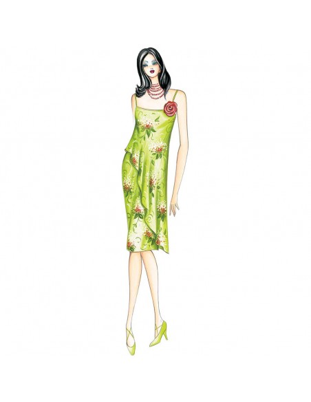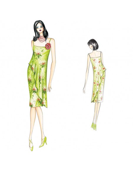 Petticoat-Kleid aus Voile, Chiffon oder Seidenjacquard mit einem weichen, überlappenden Einsatz auf der Schräge und einer durchgehenden Seite, die spitz zur Hüfte hin fällt.