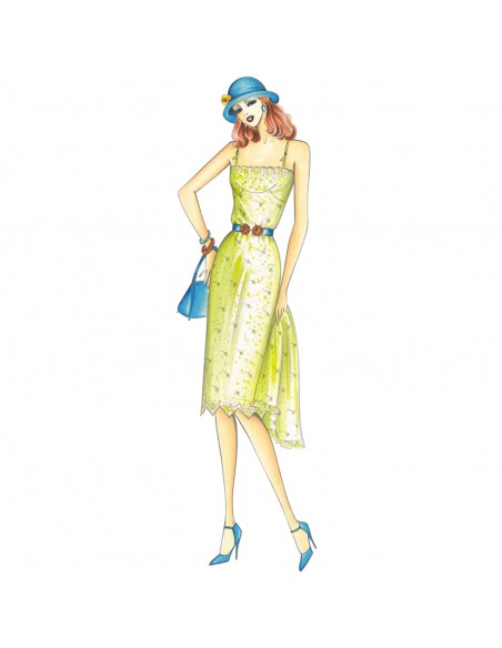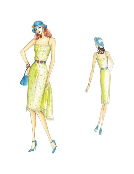Die Taille dieses Petticoatkleides wird durch einen Gürtel markiert. Empfohlener Stoff: Ösenstickerei.