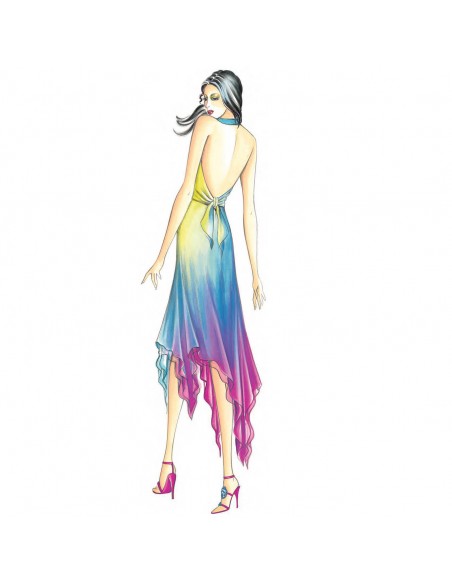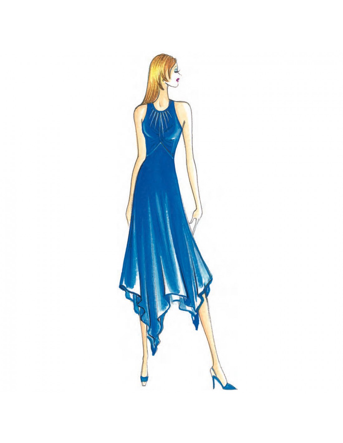Dieses Longuette-Kleid im Stil der 20er Jahre hat einen weiten, asymmetrischen Rock mit ungleichen Spitzen. Empfohlener Stoff: Chiffon oder Viskosemusselin.
