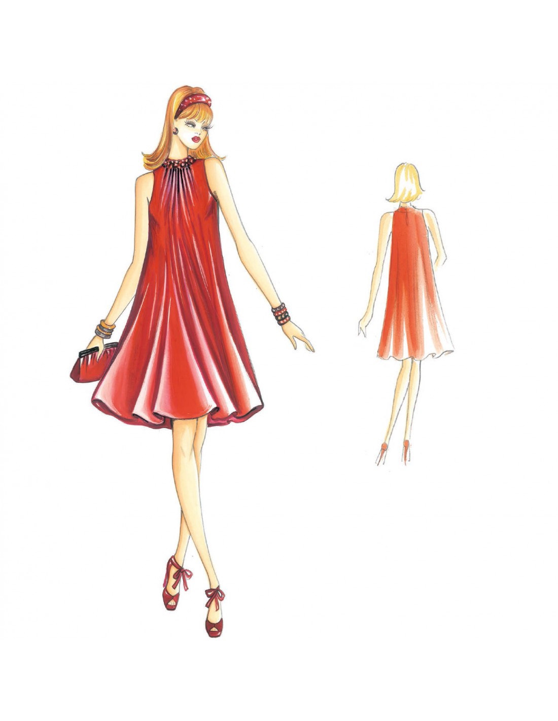 Weit geschnittenes Trapez-Kleid, Manschettenkragen, der die Kräuselung und das sportliche Ärmelloch hält.