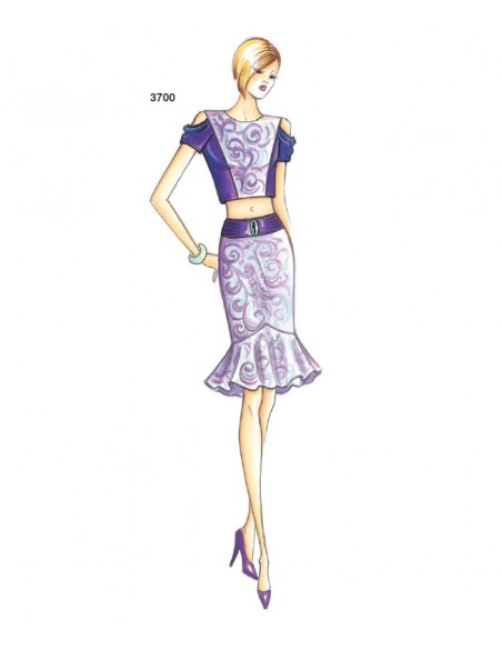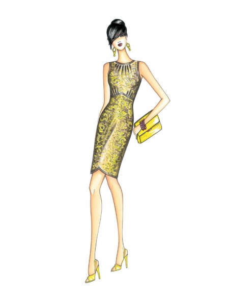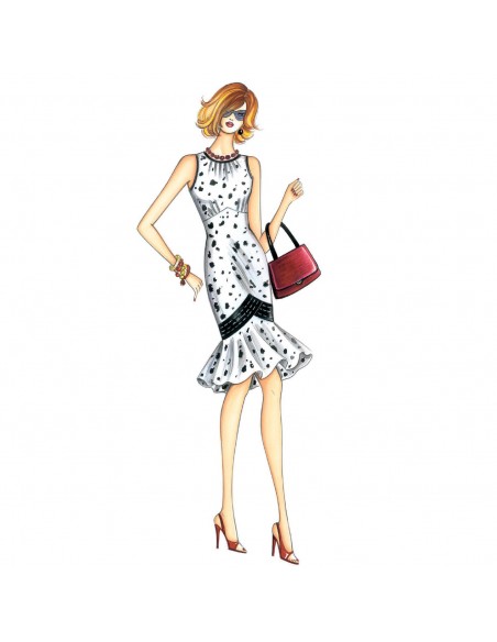 Fitted dress featuring ruffle at the skirt hem, and slightly gathered empire-line bodice with set-in sleeves. Can also be made as a sheath dress without the ruffle, or as a skirt or blouse.