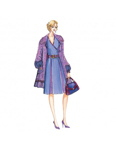 This 9/10 ethnic coat has collar, cuffs and edge of hemline trimmed with small velvet check, or embroidered silk. Suggested fabric: wool knit.