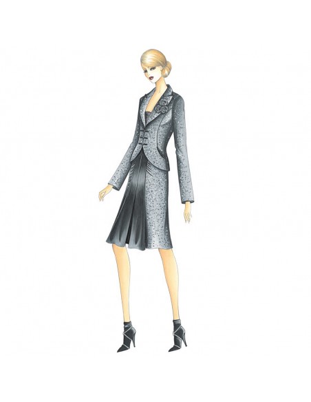 This skirt is softened by panels. Suggested fabric: satin on tweed or all crêpe or all satin. Jacket n. 9648.