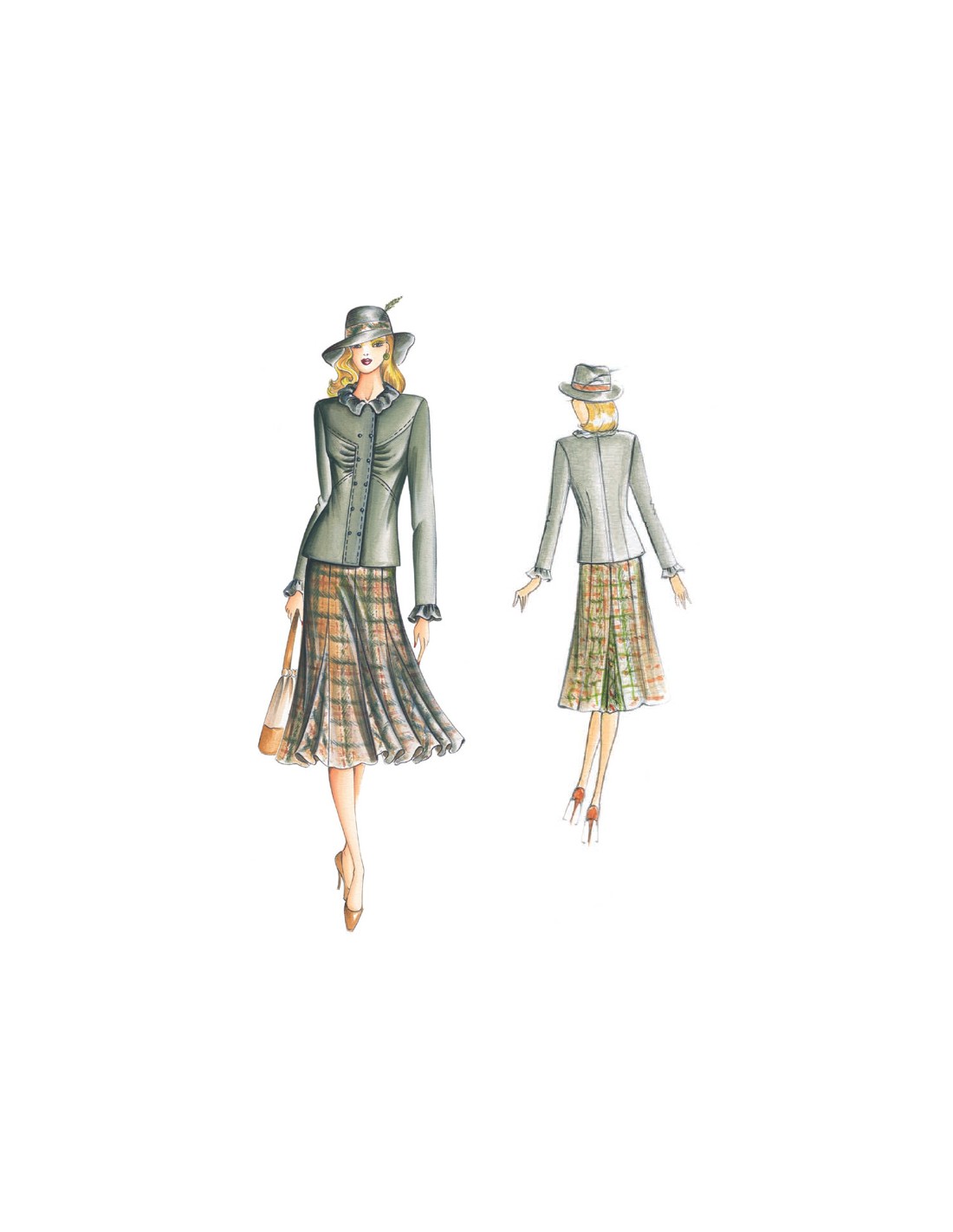 This flared skirt is made loose by the wedges. Suggested fabric: tweed.