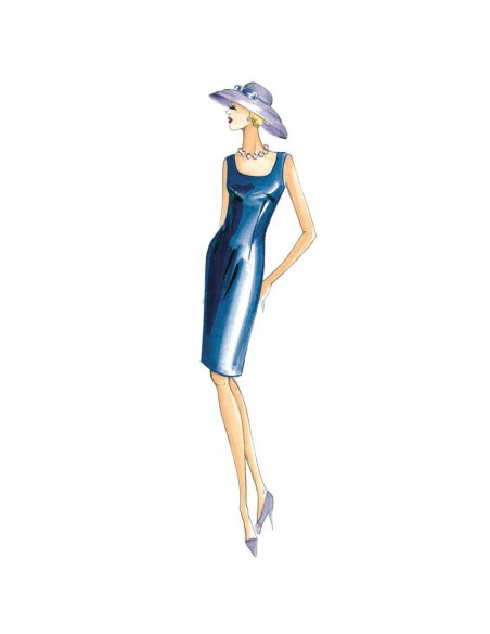 Ärmelloses Etuikleid. Empfohlener Stoff: Crêpe-Satin. Tunika n. 2148.