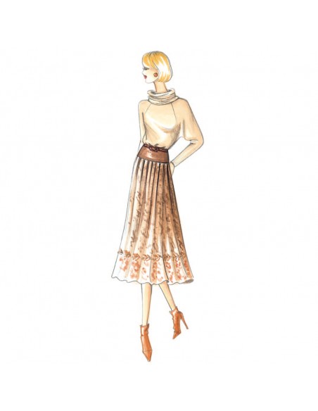 Bluse mit kapuzenförmigem Halsausschnitt und weiten Raglanärmeln. Rock n. 2906.