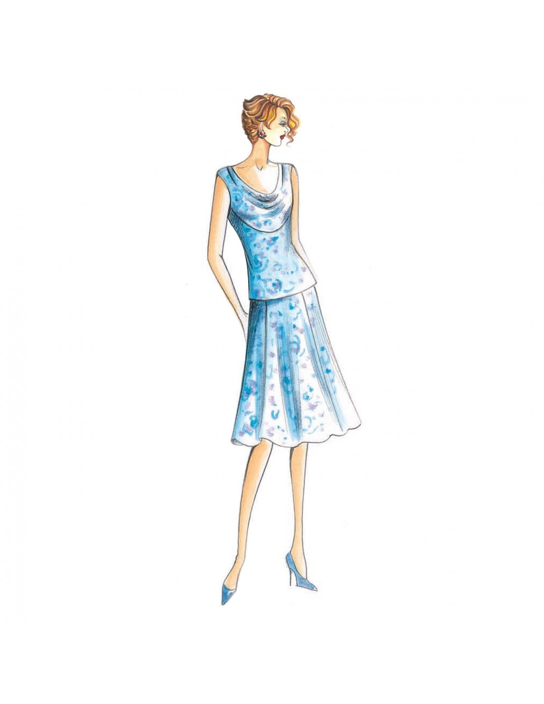 Dieses Oberteil hat einen Kapuzenkragen. Empfohlener Stoff: Voile oder Jersey.