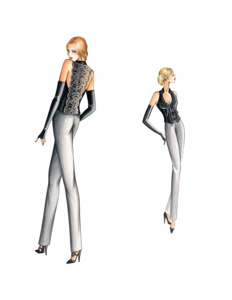 Diese Weste hat einen originellen Spitzenrücken, einen Streifenkragen, einen herzförmigen Ausschnitt und Schnüre.
