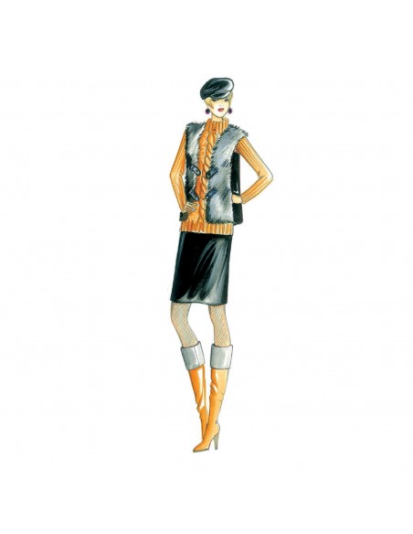Vest to be made with or without mid-length sleeves. Suggested fabric: fur and brocade or leather. Dress n° 3192.