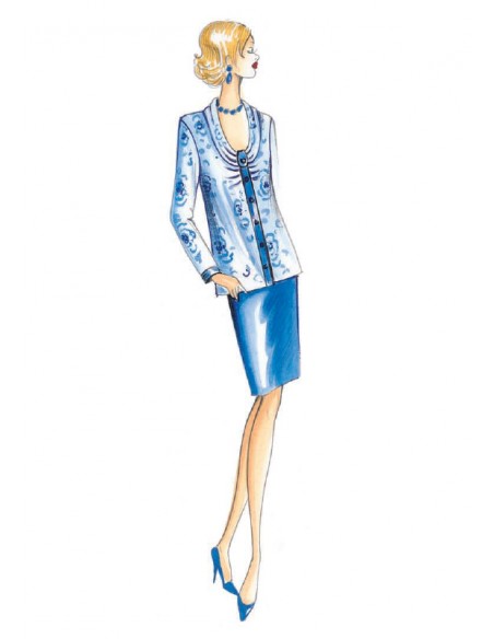 This straight tunic has a ring collar with a clasp that simulates an overstitched wind-flap. Suggested fabric: cady or crêpe.