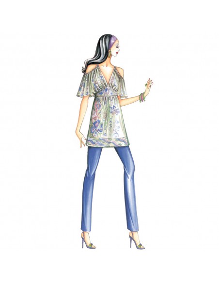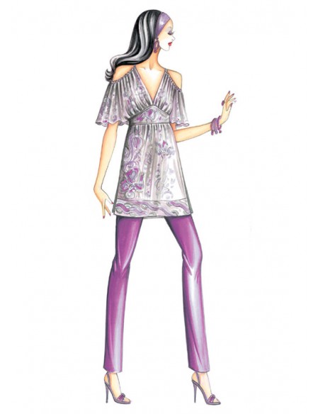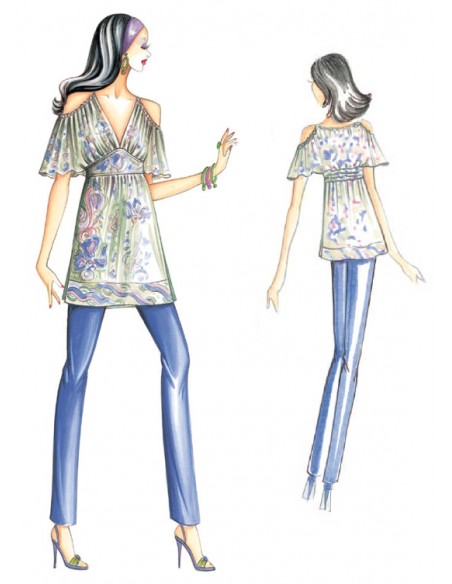 This tunic has a broad neckline and draping at the shoulders creating a tear-drop opening. Suggested fabric: muslin.