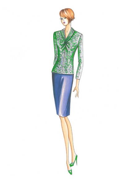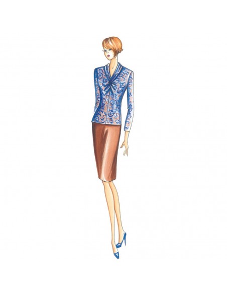 Fitted blouse with crossover drape up to V neck. Suggested fabric: jersey.