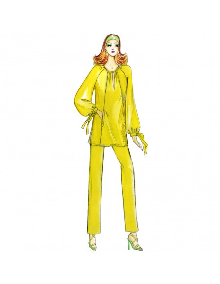 A-line tunic with low armholes, cuffs with bows and inside pockets.