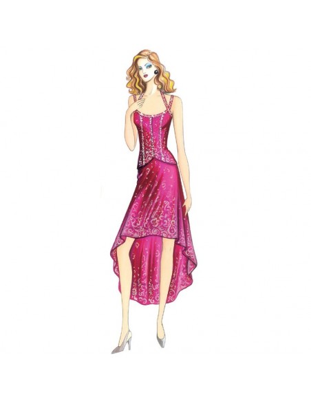 Bustier, suggested in sateen or dévoré velvet, embellished by border in rhinestone or sequins. Rock n. 5332.