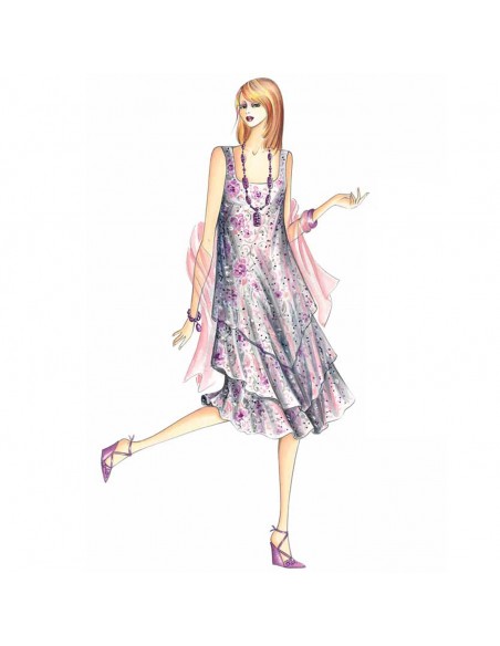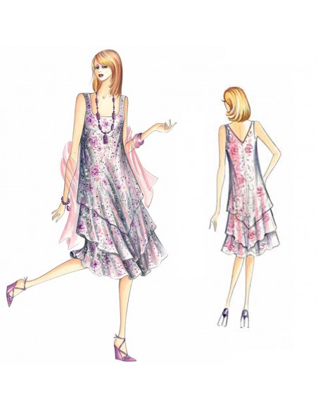 This A-line sundress has three descending layers of fabric shaped with a central point. Suggested fabric: chiffon, voile, cotton muslin, georgette.
