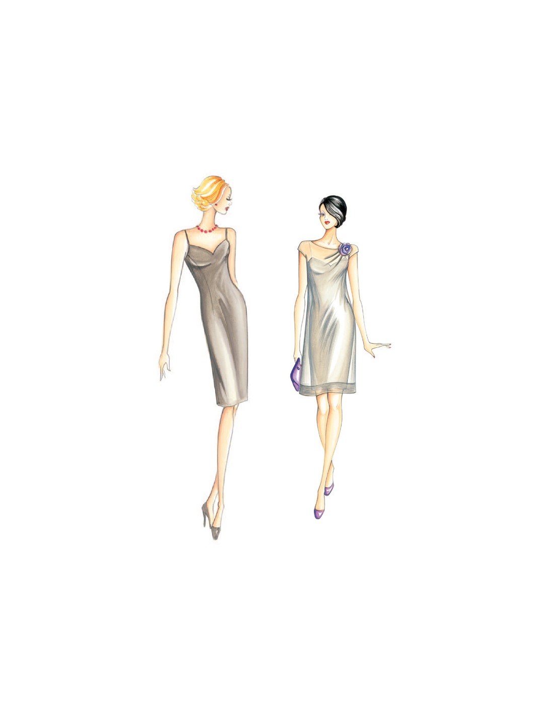 Mt. 1,10 wide 1,40. This form-fitting slip dress is straight and has a rounded neckline.To combine with the over-dress 2840.