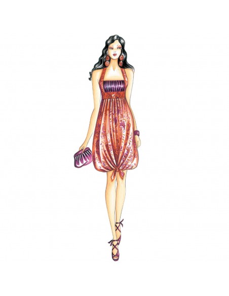 Dress with high waistline and puffball skirt. Suggested fabric: patterned silk or satinette.