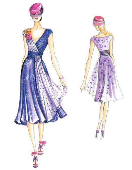 This elegant dress has a panel inserted in the pleated waistband and a gored maxi skirt. Can be made with or without the panel. Suggested fabric: muslin or georgette crêpe.
