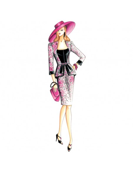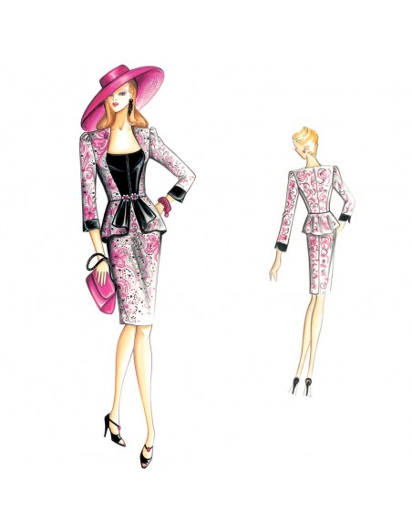 Vintage style for this jacket with corolla basque over-stitched at the center front, secured with internal hooks and gem buttons. Suggested fabric: satin crêpe or sateen.