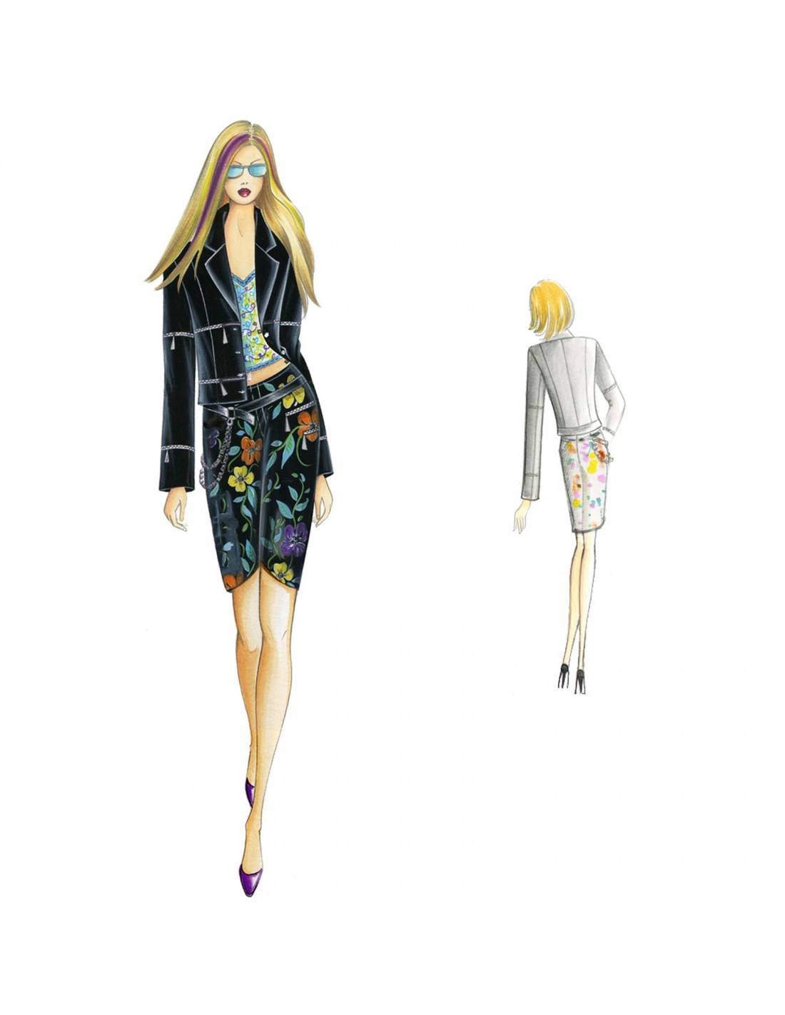 This short, tight-fitting blouse has a zipper motif inserted horizontally in the bodice and in the sleeves making the length adjustable. Suggested fabric: high-tech fabric, cotton gabardine or multicolored leather.