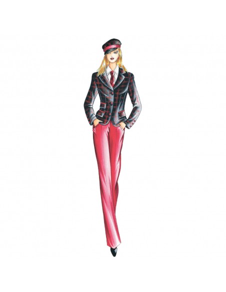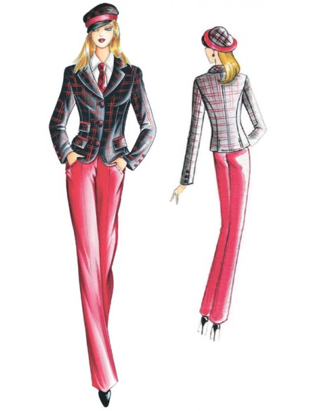 This short, tight-fitting jacket has a sporty collar. It closes with three buttons and has flaps with glossy leather trim and slits at the back