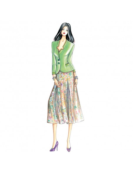 Mt. 1,40 alt. 1,40. This youthful jacket has slightly raised collar and vents. Suggested fabric: ottoman or linen.To combine with the dress 2731.
