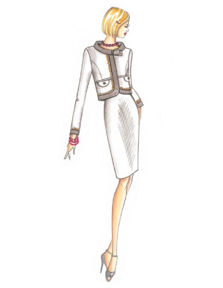 Short French jacket in satin with cowl neck finished with golden chain, and edge-to-edge fastening.