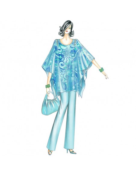 Short caftan with slightly gathered shoulder motif, available in muslin, chiffon, crepe. It can be made also in long version with V-neck.