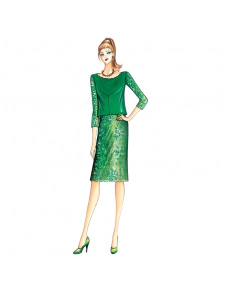 1960’s inspired short tunic to be made in crêpe with lace sleeves as is the slighlty flared skirt.