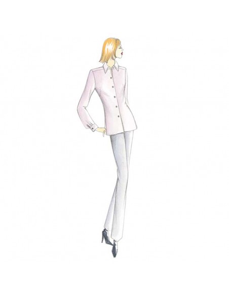 This long tight-fitting blouse has diagonal darts. Suggested fabric: satin, georgette or batiste. Trousers no. 1058.