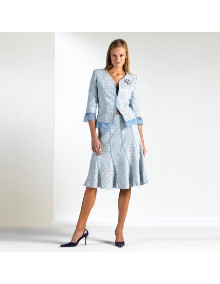 This skirt is divided into panels with sharp cuts that underline the division in the arched panels. Suggested fabric: tweed, crêpe, summer-weight wool, crêpe-satin alternating shiny and opaque.