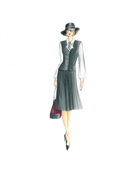 Skirt divided into panels to be made in pin-strips or crêpe-satin.