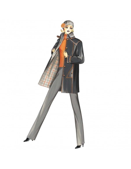 This 1970’s-style jacket has a ribbed-knit ring collar and inset pockets secured with snaps. Suggested fabric: reversible fabric or lined internally with a plaid.