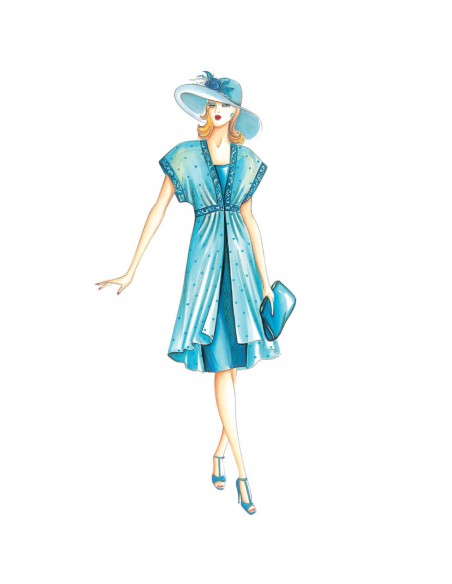 Robe-manteau para hacer en muselina o chifón, mangas kimono y talle ligeramente realzado. Falda al bies con suave drapeado en el lateral entero, bordes para hacer en tejido fantasía o de un solo color. Vestidito n. 4020.