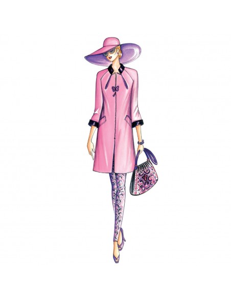 Gabán corto, medio adherente, de cuello ajustado, realzado y pinzas sueltas, mangas raglan y abotonado con zip. Se puede hacer en shantung, crespón de lana o seda, gabardina.